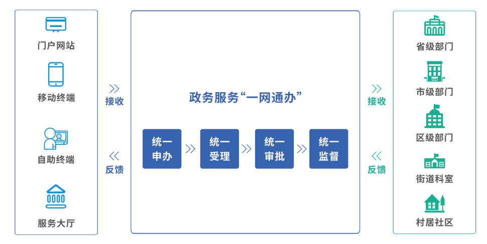 為積極響應國務院關于推進政務服務線上“一網通辦”,線下“只進一扇門”、”最多跑一次“的工作部署,運用互聯(lián)網、大數(shù)據、人工智能等技術手段,以業(yè)務為驅動,打造線上線下一體化、橫縱部門協(xié)同化、便民利企高效化的”互聯(lián)網+政務服務“解決方案體系。