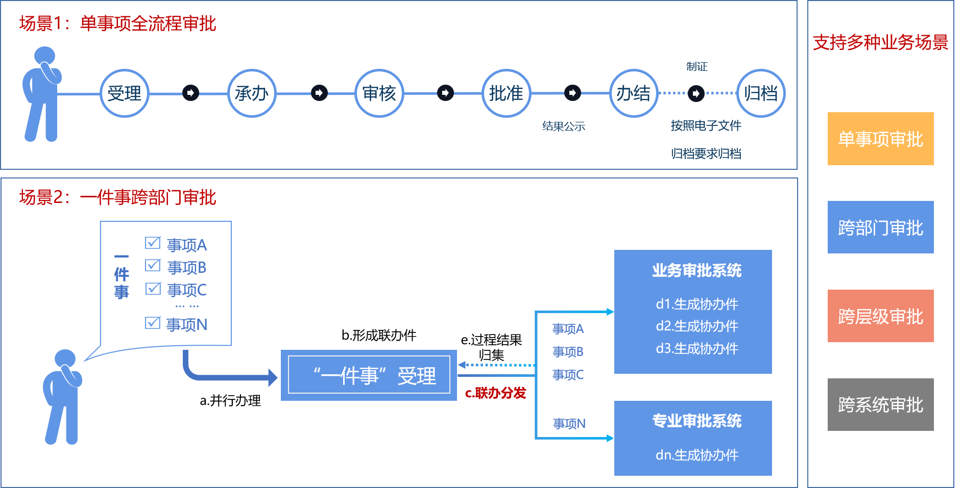涵蓋跨部門、跨層級、跨區(qū)域等不同類型事項的審批流轉,通過線上業(yè)務處理讓審批過程“看得見、管得著”,從而促使行政審批更加“規(guī)范、高效、協(xié)同”。